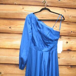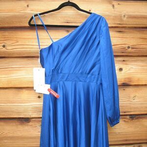 NWT Mac Duggal HIGH LOW ONE SHOULDER FLOWY GOWN Blue Size 6 49141