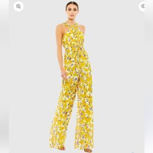 NWT Mac Duggal Ieena Yellow Crossed Halter Tie Waist Jumpsuit floral print Sz 6