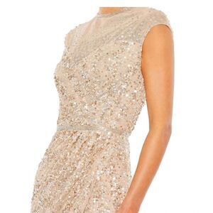 Mac Duggal Illusion Neck Sequin Gown Nude Dress Women's Size 1