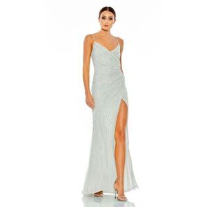 NWT Mac Duggal Beaded Sleeveless Faux Wrap Gown Size 12 Style 93733