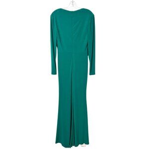 NWT MacDuggal Gathered Pearl Long Sleeve Keyhole Gown Emerald 10