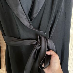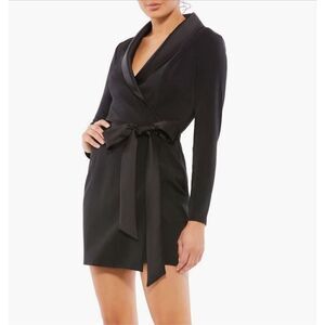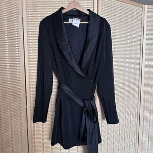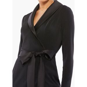 We’re in love with this tuxedo-inspired wrap dress that’s perfect for parties, holidays, and girls’ night out. The dress is cut well above the knee to showcase your gams and is styled with a satin shawl lapel and bow belt. Wear yours with glittery tights or bare legs and ankle-strap sandals.