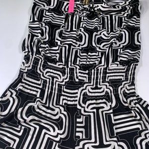 NWT Macbeth Collection Black White Geometric Pattern Strapless Jumpsuit Large