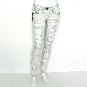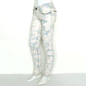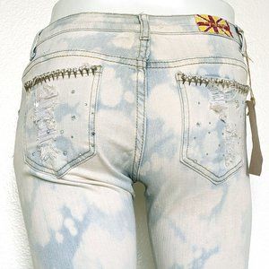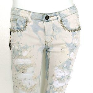 NWT Machine Bedazzled Light Acid Wash Embellished Distressed Skinny Jeans