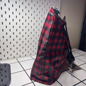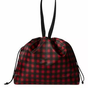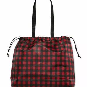 NWT Macys Red & Black Buffalo Check Plaid Nylon Large Drawstring Eco Tote Bag