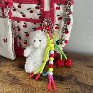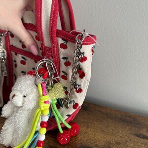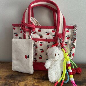 NWT Madden Girl Cherry Canvas Mini Tote Viral Crossbody Bear Multi Charm Cute