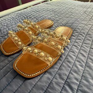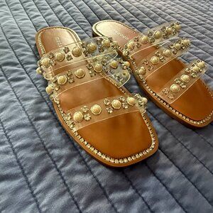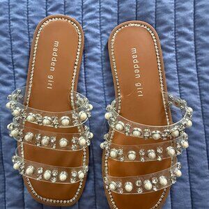 NWT Madden Girl Rhinestone and Pearl Clear Achieve Sandals | Size 7.5