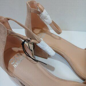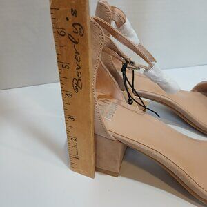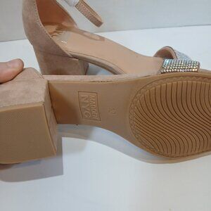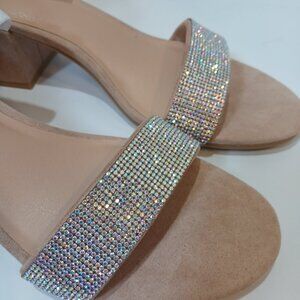 NWT Madden NYC Cream Suede and Rhinestone Low Block Heel Sandals