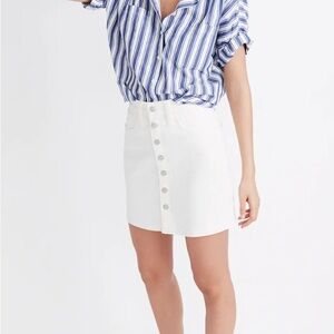 New with tags Madewell Denim Skirt a button up mini with a flattering straight shape. Crafted if the best of the best denim with a touch of stretch. It’s a skirt as fuss free as a pair for jeans. It even has classic five pocket styling.