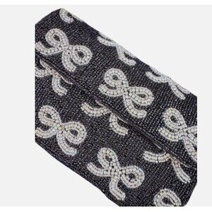 NWT Made in India Black & Silver Bow Beaded Bag Purse, Rare And Unique