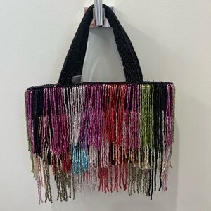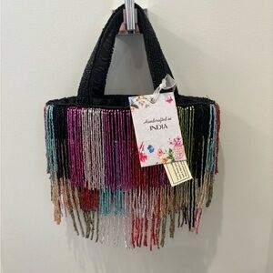NWT Made in India Multicolor Beaded Fringe Tote Bag