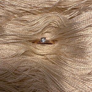 18 karat rose gold plated bronze ring with natural topaz stone. Rope band.