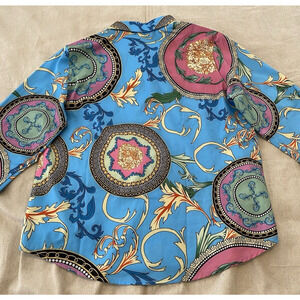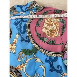 NWT Made with Love Blouse Womens Medium Boho Silky Blue Collared Button Up Shirt