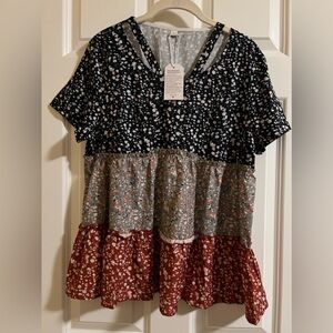 @fireflyrd hi there! This brand doesn’t say. Per the tag it says recycled fabric. It is a nice feel material. I have another top from this brand, it washes well. Please see the pic of the tag, thanks. Have a great day!