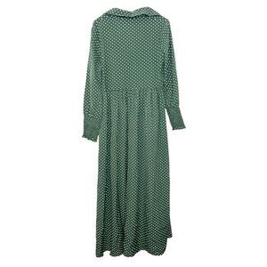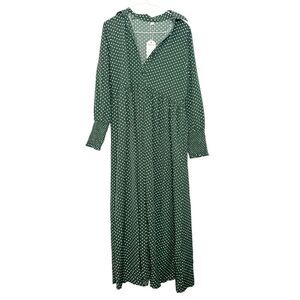 NWT Made With Love Polka Dot Long Sleeve Button Front Maxi Dress Green White Small