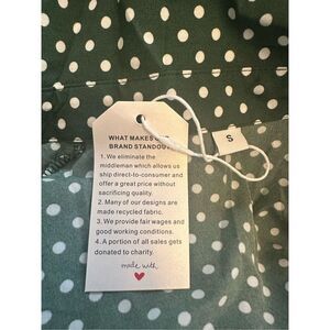 NWT Made With Love Polka Dot Long Sleeve Button Front Dress Green White Small