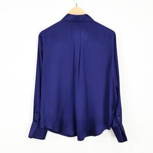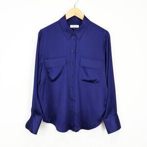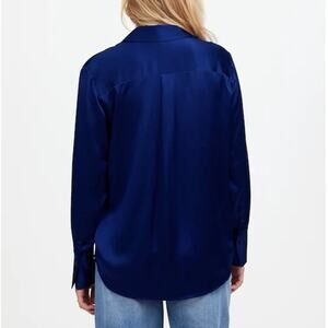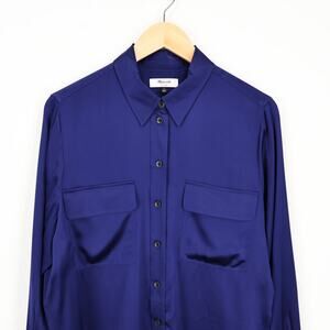 NWT Madewell 100% Silk Flap-Pocket Button-Up Shirt Deep Cobalt Blue Size Large