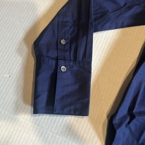 NWT Madewell 100% cotton Navy Blue button Shirt w one pocket high low front sz S