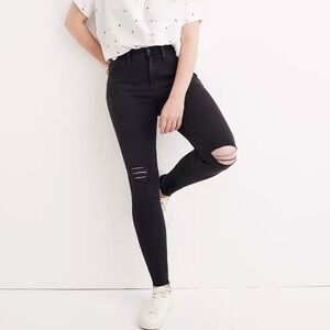 NWT Madewell 9” Mid Rise Ripped Distressed Skinny Jeans In Black Sea