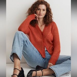 NWT Madewell Alpaca-Blend V-Neck Cardigan Button-Front True Black Large