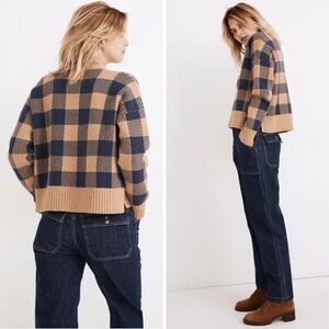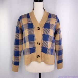 NWT Madewell Bayberry Cardigan Sweater in Buffalo Check, XXS, Kim Kardashian