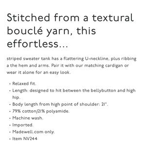 NWT Madewell Bouclé-Knit Sweater Tank Vintage Ivory Juniper Berry Size M
