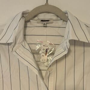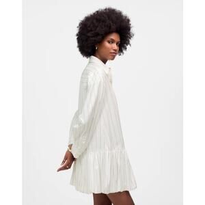 NWT Madewell Bubble-Hem Mini Shirtdress in Pinstripe Poplin White Size XS