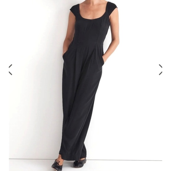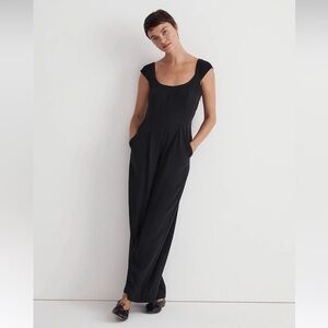 NWT Madewell Cap-Sleeve Crop Wide-Leg Jumpsuit in Black Size 2