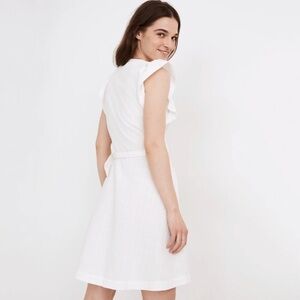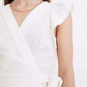 NWT Madewell Cotton Ruffle Sleeve Textured Wrap Mini Dress In White