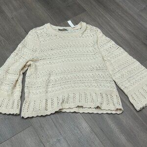 NWT Madewell Cream Crochet Knit Bell Sleeve Scalloped-Trim Sweater Size Small