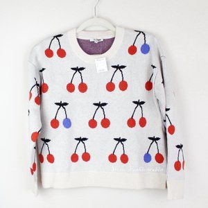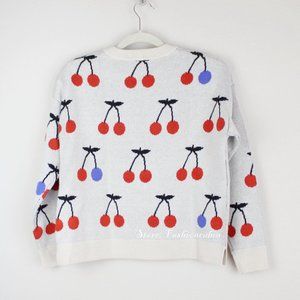 Slightly cropped to match up with high-rise bottoms, this crewneck sweater has the cutest stone fruit knit right in. In other words: all this and a cherry on top.