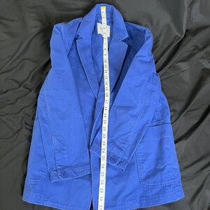 Made from transitional regenerative cotton, this (Re)generative chino blazer offers a relaxed, all-season look. Designed with large patch pockets, clean bias binding, and eco-friendly corozo buttons dyed to match. Regular fit.