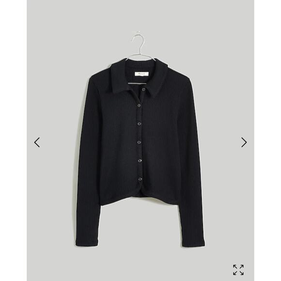 NWT Madewell Curved-Hem Polo Cardigan Black Tee Size XXS