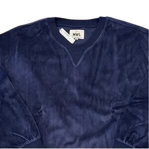 NWT Madewell Dark Baltic Navy MWL Plush Velour Crewneck Sweatshirt