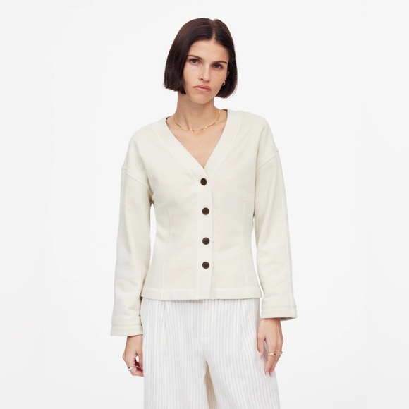 NWT Madewell Darted Button Front Cardigan Sweatshirt in Parchment, Size Small. Regular fit. Length: designed to hit between the bellybutton and high hip.