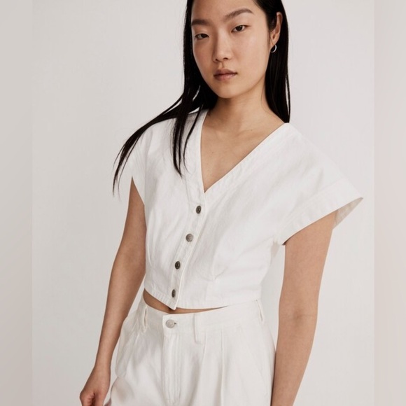NWT Madewell Denim Cap-Sleeve Crop Top