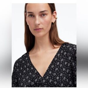 NWT Madewell Drapey Seersucker Midi Dress Elegant Black Floral Women's Size 4