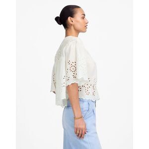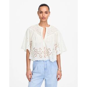 Swing into spring with this beautifully detailed Madewell Henley Top, crafted from 100% cotton and finished with delicate eyelet embroidery. The shirred yoke and scalloped hem add playful texture, while its relaxed fit and cropped length make it perfect for pairing with high-waist denim or flowy skirts.
