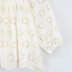 NWT Madewell Embroidered Shirred Puff-Sleeve Top In Floral Eyelet Ivory Size XXS