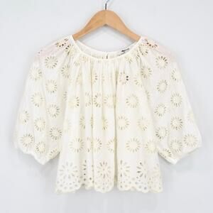 NWT Madewell Embroidered Shirred Puff-Sleeve Top In Floral Eyelet Ivory Size XXS