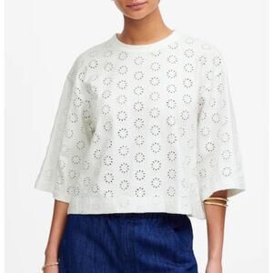 NWT Madewell Embroidered Eyelet Wide-Sleeve Boxy Tee White 100% Cotton Medium or Large Causal Beach Cottagecore Classic Elegant Feminine