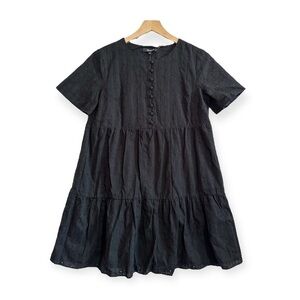 NWT Madewell Eyelet Button-Front Tiered Mini Dress XSP, Black