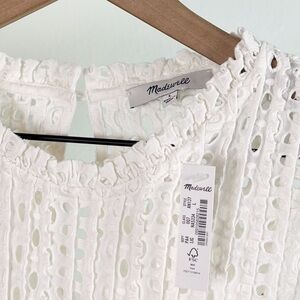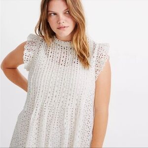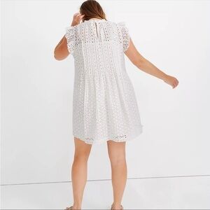 NWT Madewell Eyelet Ruffle-Sleeve Pintuck Mini Dress in White