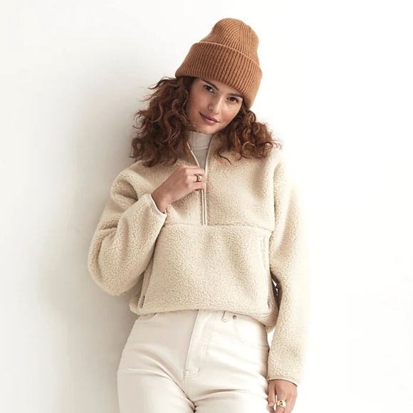 NWT Madewell Faux Shearling Half Zip Pullover in cream size small