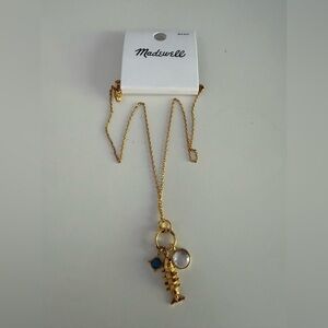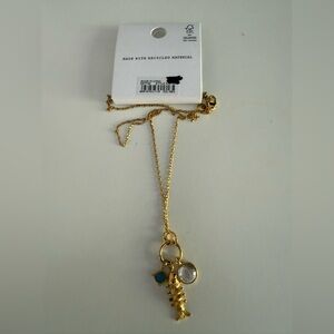 Chic gold necklace with a playful fish charm. Features turquoise and silver accents. Ideal for a stylish touch.