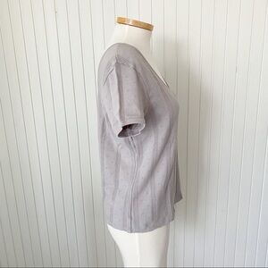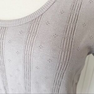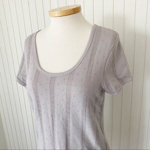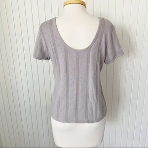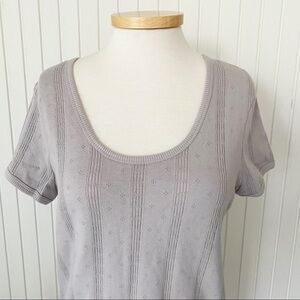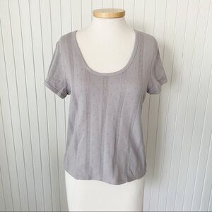 NWT Madewell gray (grey) top. Eyelet detailing. Short sleeves. Scoop neck in front and back. Great neutral color. Comfortable everyday shirt that can be dressed up or down.