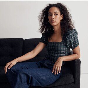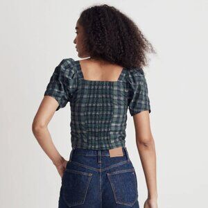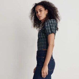 NWT Madewell Hopewell Puff-Sleeve Crop Top in Plaid