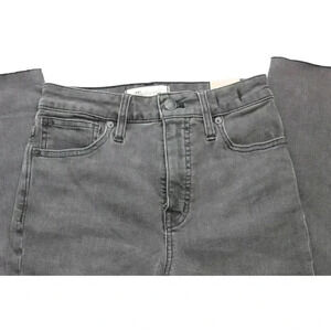 Elevate your denim game with these NWT Madewell jeans in size 24. The curvy high-rise fit and skinny leg cut make for a flattering combination, while the gray distressed denim adds a touch of edgy style. The closure features both a zip and button for added security, and the pockets provide ample space for your essentials. Crafted from a blend of polyester, cotton, and elastane, these jeans are both comfortable and stretchy. The high-rise fit and denim fabric type ensure a versatile addition to your wardrobe, perfect for dressing up or down. The logo accents add a touch of branding to the overall look.