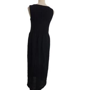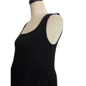 A stretchy cotton knit tank dress with a flattering squoval neckline and an easy waist. Stretchy knit bodice with soft cotton skirting with soft cotton gauze-y texture