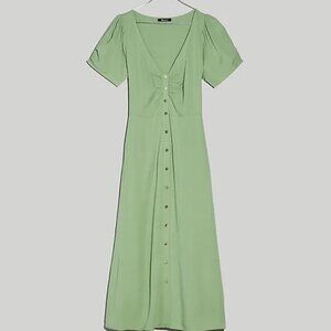 NWT Madewell Leedra Button-Front Midi Dress in Gatehouse Green Size 8